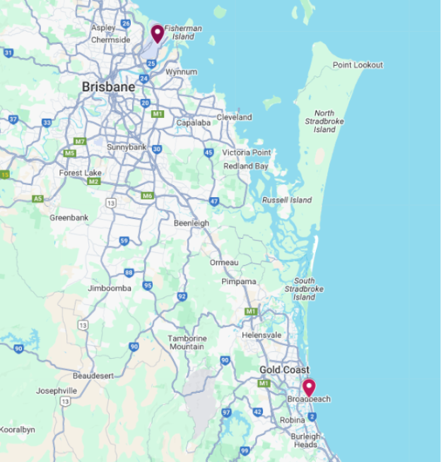 - Brisbane Airport → Brisbane Domestic → Gold Coast